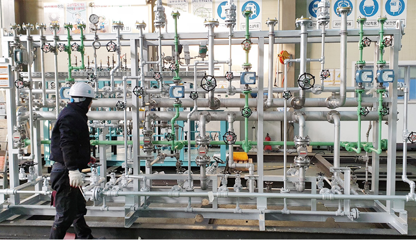 Compressor가 고속 회전할 때 프로세스 가스가 밖으로 누출되는 것을 방지하고 고속 회전에 이물질 접촉에 의한 발화 원인인 산소 차단 목적의 밀봉 가스를 공급하는 시스템입니다.